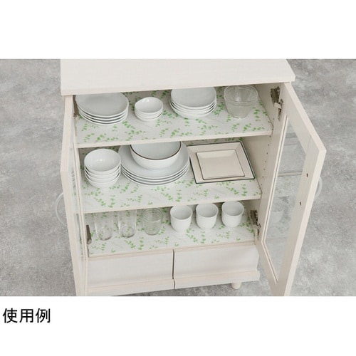 消臭・抗菌・防カビ加工されたユーカリ柄の棚用シートです。クッション性があり、敷きズレしにくい仕様です。ハサミで自由にカットしてサイズ調整できます。汚れもサッと一拭きで落とせます。 |