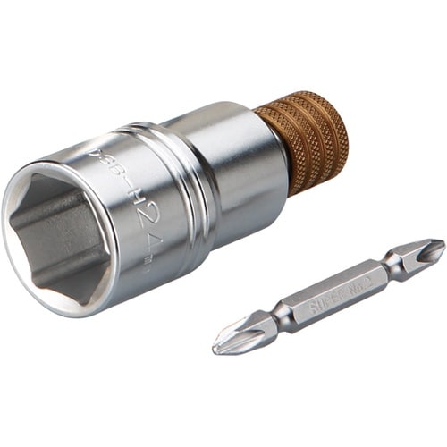 ソケットは、6角タイプの強力型。長さは、標準タイプです。市販のドライバビットで使用できます。色によってサイズが判別できます。18Vインパクトドライバ対応。 |