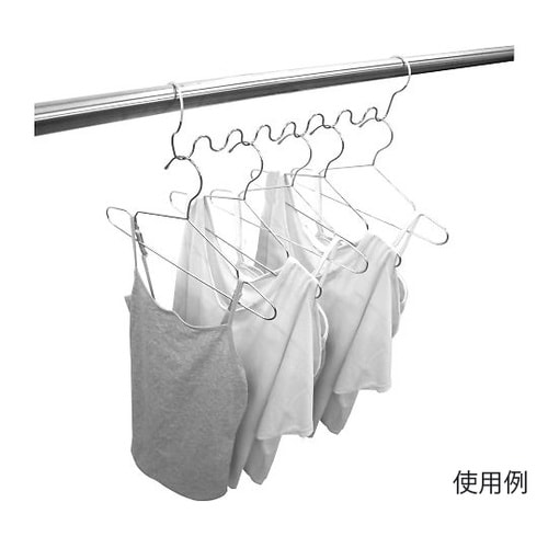 丈夫で錆びに強いステンレス製の8連ハンガーホルダーです。ハンガーが風によって動いたり偏ったりするのを防ぎます。クローゼットのバーに掛けて、吊り下げ収納としても最適です。 |