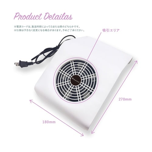 ネイルマシンでオフをする時に飛び散るダストをぐんぐん吸い取る集塵機。セルフの方でも使いやすい、コンパクトサイズです。 |