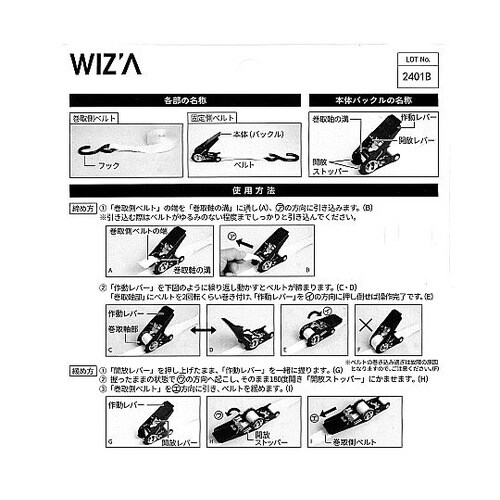 ラチェット式だから、荷締めが確実、スピ−ディ−。ベルト式だから、結束固定するものを傷つけにくい。 |