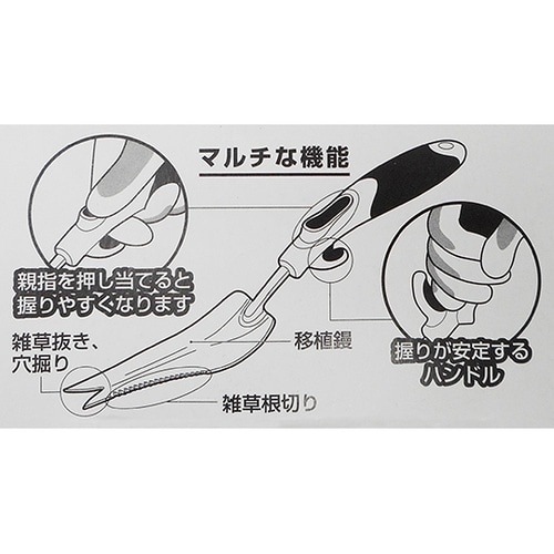 頑丈で軽い、多機能な園芸ツールです。雑草抜き、根こそぎ雑草刈り、穴掘りなどに使えます。 |