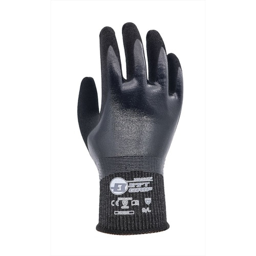 手の甲までコーティングしているので、油やゴミの侵入をしっかり防ぎます。手のひらには独自製法のファインフィニッシュ加工をしているので、油を伴う作業でも高いグリップ性能を発揮します。 |