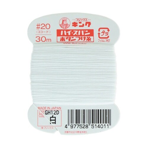 ボタン付け専用の高強力ポリエステル糸。”引っ張り”や”折り曲げ”に抵抗力のあるボタンつけ専用の高強力ポリエステル糸です。過酷な摩擦にもよく耐え、ボタンの脱落を防ぎます。 |
