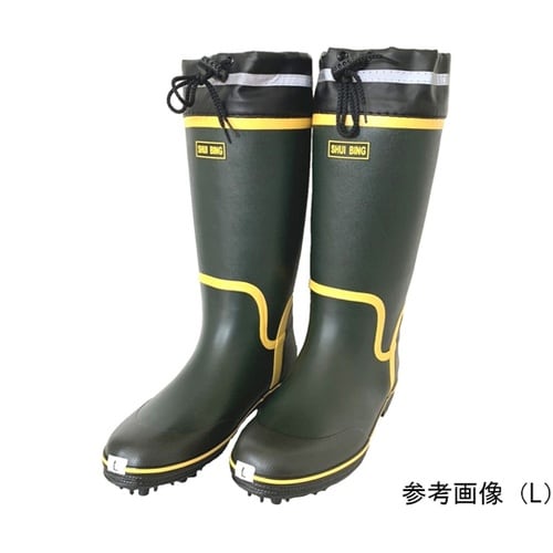 柔らかい履き心地のゴム製スパイク長靴。水しぶきや砂埃を防ぐ反射カバー付き。 |