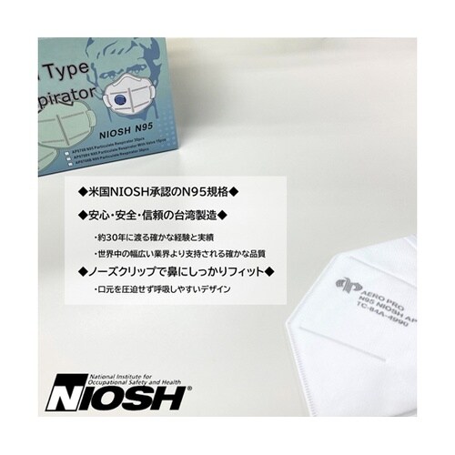 Aeropro N95マスク 30枚入 折りたたみ式 台湾製【1ケース20箱】 JN018−C
