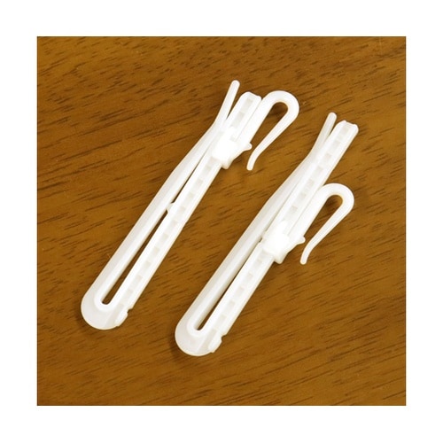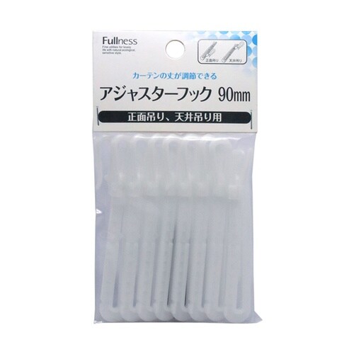 カーテンの丈が調節できるアジャスターフック(カーテンフック)です。天井付・正面付どちらにもご使用いただけます。 |