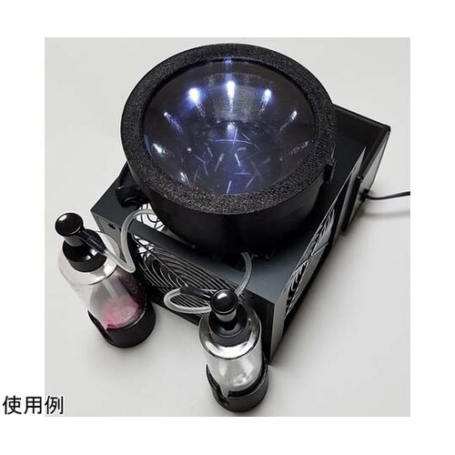 ペルチェ素子を使って冷却し、放射線の飛跡を観察する実験用霧箱です。直径75mmの広い観察面で、多くの飛跡を観察することができます。また、5 ー 6 人が同時に観察できます。 |