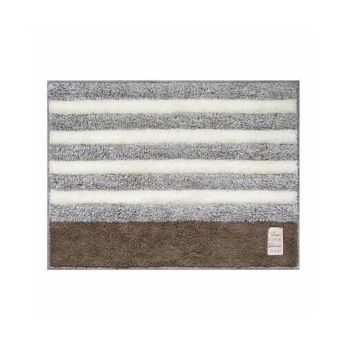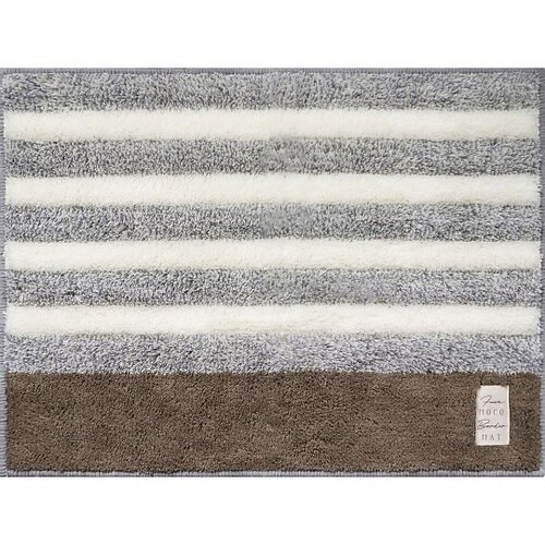 もこもことしたかまぼこのような凸凹形状が魅力的なバスマットです。踏むたびに足裏に心地よい感触を与えてくれます。バスマットの右下にお洒落なワンポイントのタグが付いています。 |
