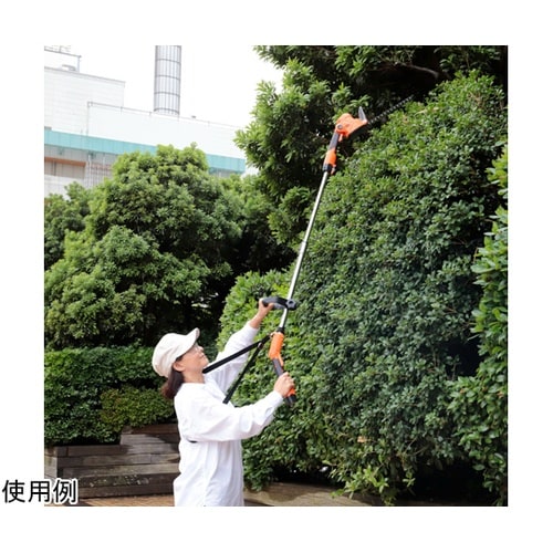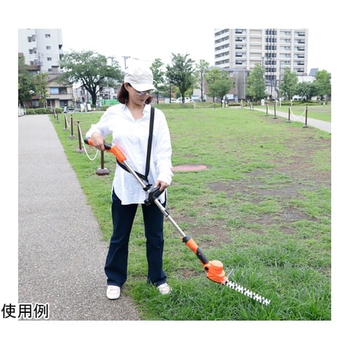 生垣も草刈りも楽な姿勢でなぞるだけで簡単に剪定できます。場所を選ばず作業ができるコードレスタイプ。伸張パーツをつけて高枝にも対応し、はずせばハンディーとしてお使いいただけます。 |