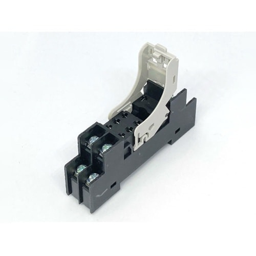 2c接点スリムパワーリレー用のリレーソケット。リリースレバーの操作でリレーをワンタッチで脱着できます。 |