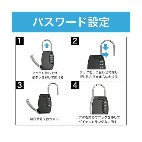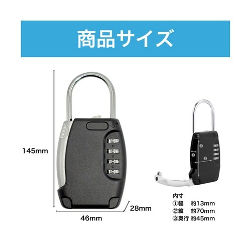 合金製のスリムな4桁ダイヤル式キーボックスです。収納スペースに鍵などをしっかり保管できます。コンパクト設計なので、場所を取らずに設置できます。 |