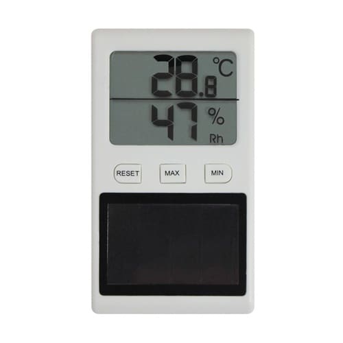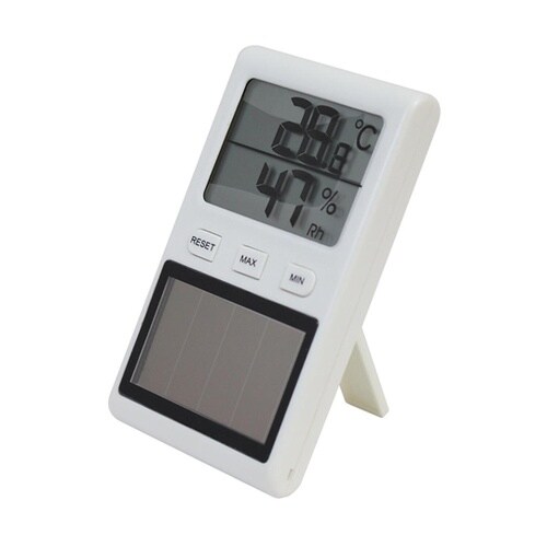 温湿度計。お部屋を快適空間に。温度・湿度を同時表示。マグネット付きでピタっと貼れる。ソーラーパネルで経済的。大きなデジタル顔面表示。温湿度の最高・最低値のメモリー機能付き。 |