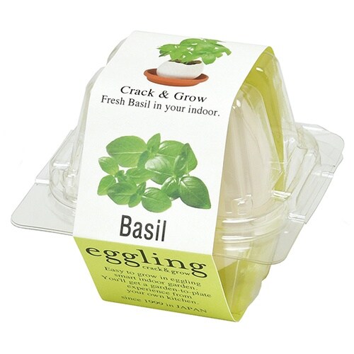 まるで本物のたまごのようなegglingシリーズ。たまごは陶器でできていて中にはタネと土がセットされています。上部をスプーンなどでコンコンと割って水をあげるとかわいい芽が出てきます。