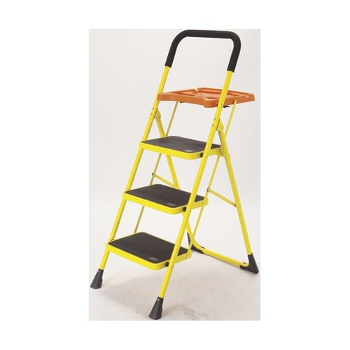 トレー付きで便利な多機能ステップ。サッと広げるだけで高所もラクラク作業!荷物の仮置きに便利!安心ストッパー付き。安全性を考え丈夫なスチール製ステップを採用。 |