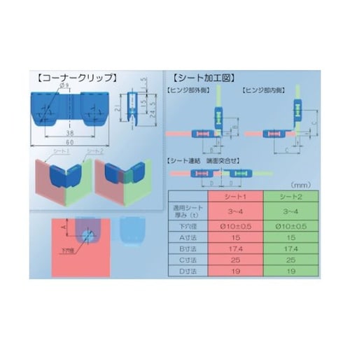 梱包・組仕切りの収納スペースが効率よく使えます。ヒンジ構造になっており用途に応じた使用が可能です。設備や機械を使用せず、手作業で簡単に取り外せます。仕切りなどの留め具として。 |