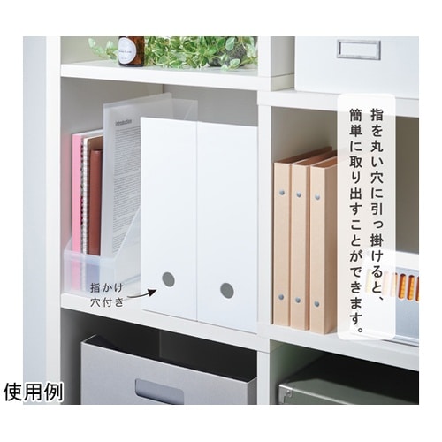 軽くて丈夫。安定感抜群の収納ボックス。用途に合わせて、取り出しやすい収納が可能!指を丸い穴に引っ掛けると簡単に取り出すことができます。 |