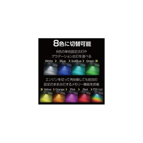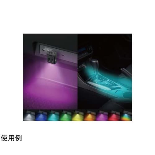 8色の単色固定点灯やグラデーション点灯を選べるUSB−Cポート用のLEDライトです。コンソールBOXやセンターコンソールなどの暗い場所を照らすのに適しています。 |