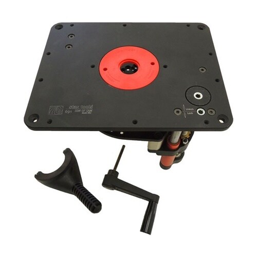 staxtools 401 WOOD COOKER ルーターテーブルにジャストフィットする操作が簡単なルーターリフターです。アルミ製で美しいブラックアルマイトで表面処理されております。 |