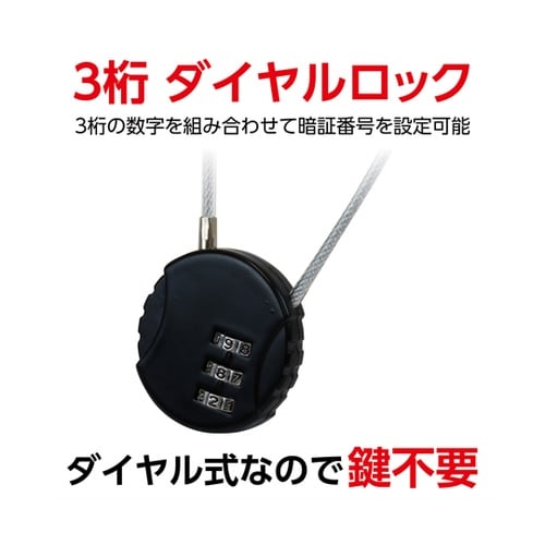 3桁のダイヤル式で鍵が不要なワイヤーロックです。ワイヤーとダイヤル錠が一体化しているため、鍵を紛失する心配がありません。ステンレスワイヤーはPVC被膜付きでサビや傷に強い仕様です。 |