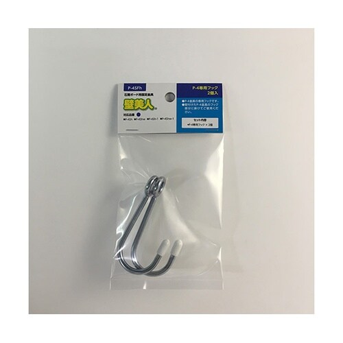石膏ボード壁に設置可能な金具、「壁美人」P−4金具の専用フックです。壁美人金具P−4金具の専用フックです。壁に取り付けた金具の中央フック部分に引っかけてご使用ください。 |