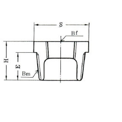 品番:BU3・4x3・8 | 頂部形状:6角 | 頂部対辺の径(mm)S:32 | 全長(mm)H:24 | ネジ長さ(mm)E:18 | コード番号…