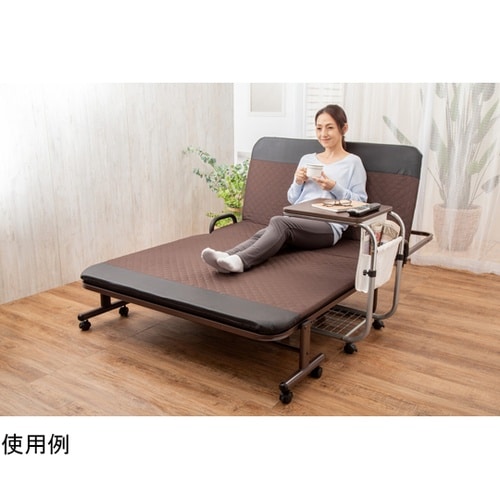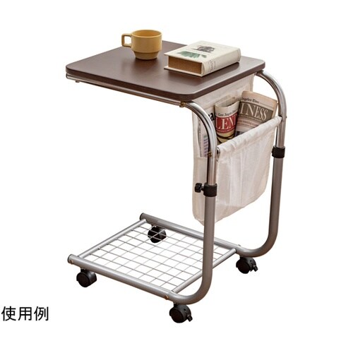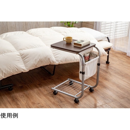 ベッドサイドの補助テーブルとしてピッタリ。シンプルで省スペース。小物や雑誌が入るポケット付き。高さ調節可能で、お好みの高さに調節出来ます。 |