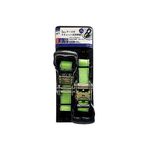 結束固定するものを傷つけにくいベルト式です。ラチェット式で、荷締めが確実でスピーディー。計量物の荷締め、家庭内や倉庫内の荷崩れ防止にご使用頂けます。 |