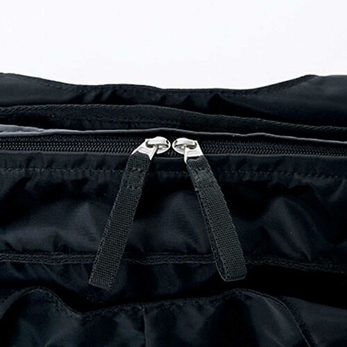 中身は収納物が見えやすいパステルカラー。肩からずれ落ちにくい設計で、持ち手にはクッション入り。中の荷物が濡れずに安心の撥水素材。 |