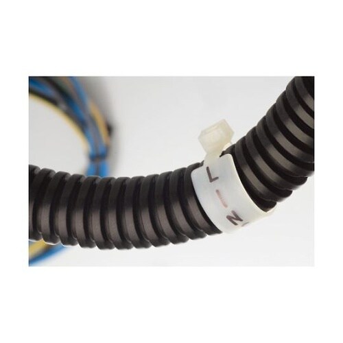 結束したケーブルを仕分けして、区別することができます。横に文字を書くことができます。結束した電線やケーブルなどの識別。 |