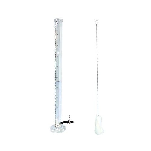 深さ50cmの透視度計です。透視度計に検水を入れて上から覗き、コックを開いて検水を排出し、底部の標識板の二重十字が見えたところで目盛を読みます。 |