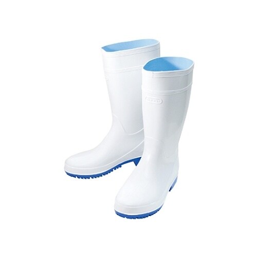 抗菌加工・耐油仕様のPVC長靴。水切りが良く滑りにくい。取り外し可能なインソールの下には凹凸があり、空気を循環し長靴内のムレを軽減します。ズボンを長靴内に入れてもズレ上がりにくいズボン止めを採用。 |