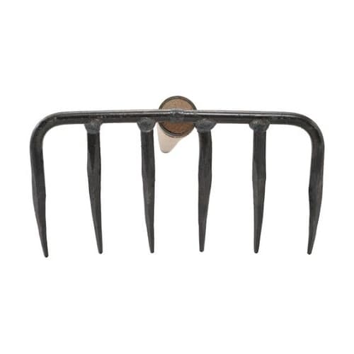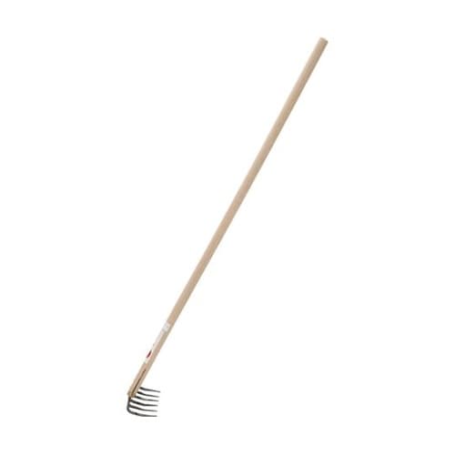 掻き分けやすく、草切れを良くするために四角錐状の爪の角を正面向きに設計しています。土も掻き分ける頑丈な爪で、草掻きや土ならしと幅広く使える草掻きレーキです。 |
