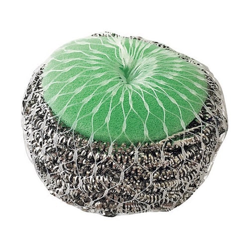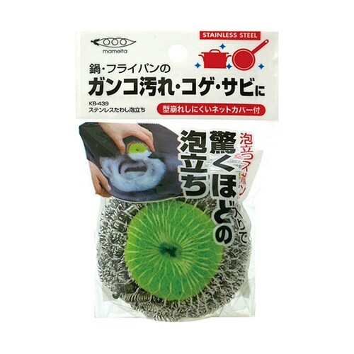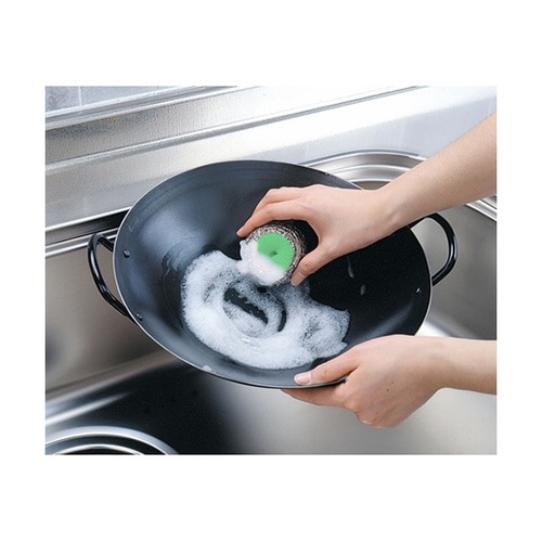 中心のスポンジが、洗剤の泡立ちを良くします。全体を手にやさしいネットでくるんでいるので、握りやすく、型崩れしにくくなっています。 |