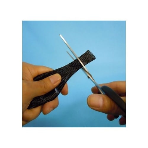 ハサミでカットしてもほつれにくい編組スリーブですNFLチューブは特殊製法で編み組みしているため、ハサミでキレイにカットできる便利な伸縮チューブ(メッシュチューブ〔スリーブ〕)のソフトタイプです。 |