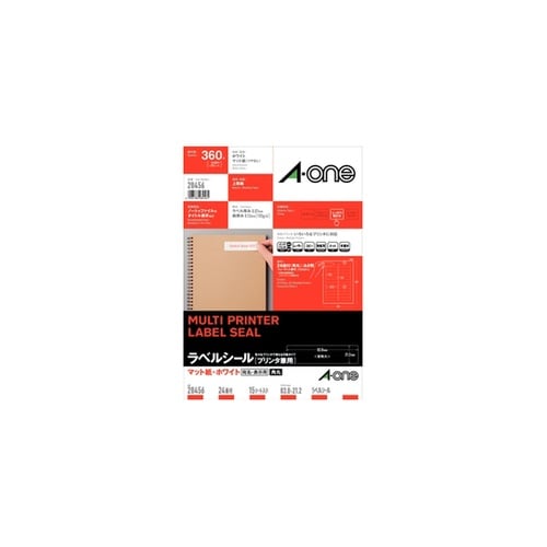 エーワン ラベルシール(プリンタ兼用) マット紙・ホワイト A4判 24面 四辺余白付 角丸 1パック(15シート入) 28456 A0C2-8512