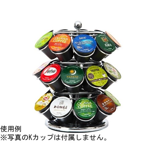 お好みのK−Cupをディスプレイするためのアクセサリーです。気分に合わせてK−Cupが選びやすくなる回転式のホルダーです。1段につき9個のK−Cupをディスプレイ出来ます。 |