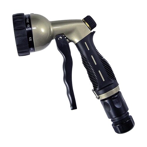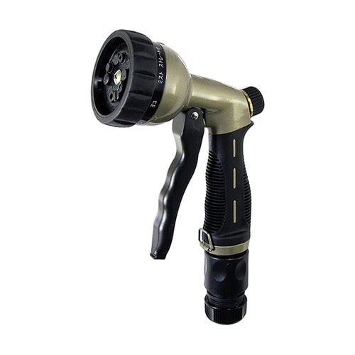 お庭などへの散水。エクステリアの掃除。洗車などに。頑丈なメタルボディ。ゴムグリップに滑りにくく、細かいリブが手にフィットする形状なので握りやすい。 |