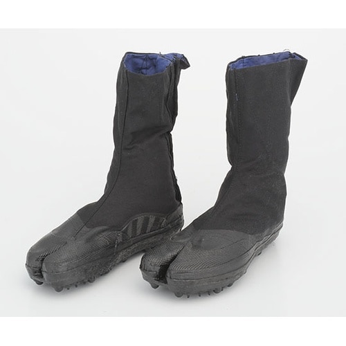 林業の作業班で最も多く使われているスパイク足袋。ハイカット(コハゼ8枚)タイプです。ゴムでコーティングし補強。内部は先割れ、外部は先丸タイプ。 |