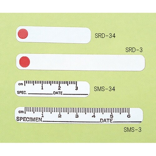 スペシャルティーフォトグラフィーラベルはラベル上に書き込みができ、写真の整理を容易にします目盛り付きラベルは写真上に貼ることで、標本等の大きさを知る目安になります。 |