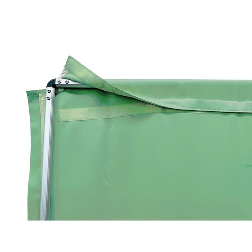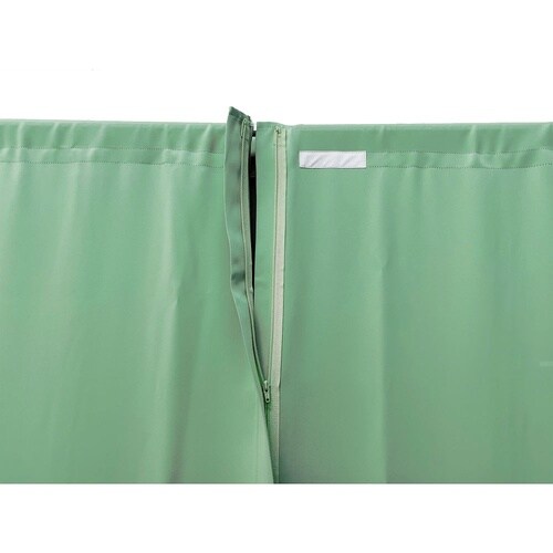 カーテンは上下部をマジックテープで取付してあるので、取り外して洗濯も可能です。カーテンをファスナーで連結する事で隙間が無く、プライバシーの保護を実現しました。 |