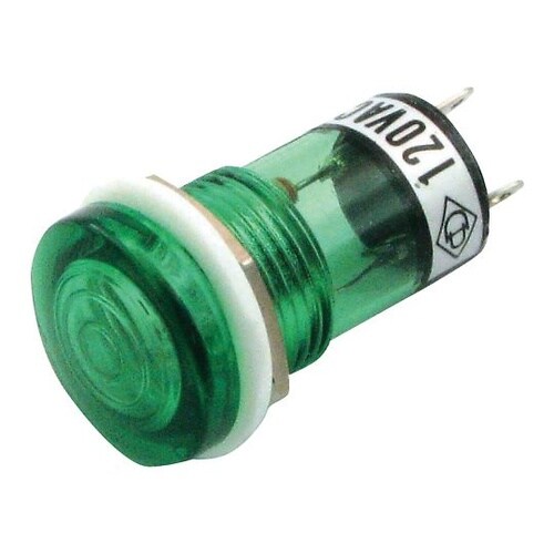 タイプ:平凸型 | 色:緑 | 発光面サイズ(mm):φ18 | 定格電圧:AC120V(抵抗内蔵) | 取り付け穴サイズ:M15mm(ナット止め) …