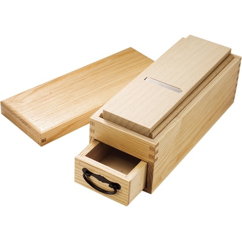 鰹節を削る道具です。「かつ箱の命は鉋刃」にこだわる本職用の鋼材は、安来鋼の中でも最高級といわれる青紙を使用しています。 |