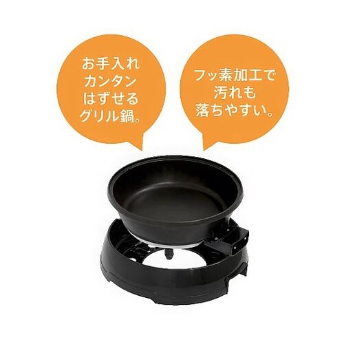 プレートが取り外せ、お手入れが簡単なグリル鍋です。鍋は深型で様々な調理に活躍。自立するガラス蓋はテーブルの上で場所を取らず快適です。 |