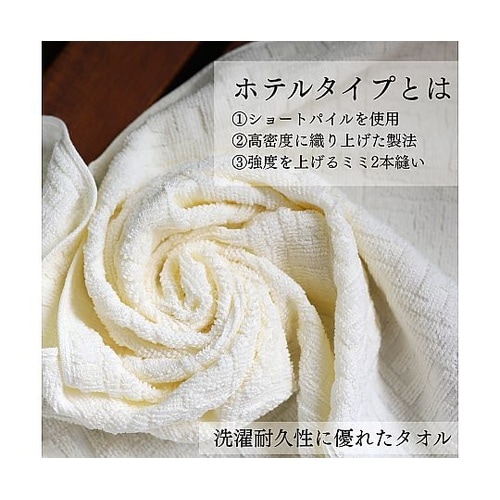 まるでホテルのような高級感のあるタオルです。糸をしっかりと撚り、他のタオルよりも強度と耐久性を持ちます。 |