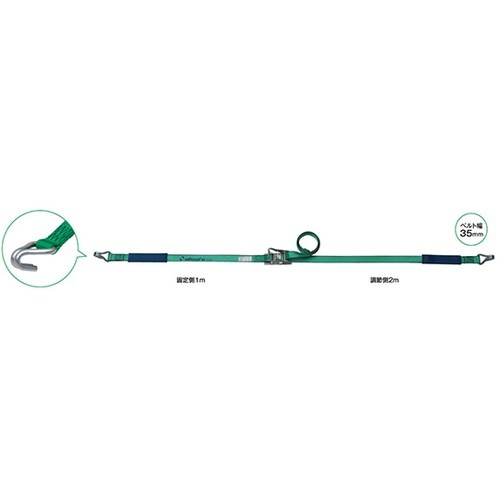 ラチェット式により簡単な操作で確実な荷締め作業ができるベルトです。 |