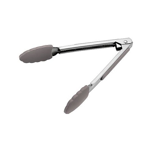 上向き・下向きで自然開閉する、不思議なトング。リングで留めたりストッパーを引っ張ったり、面倒な操作が必要なし。片手で簡単操作。先端部がシリコン製なため、お皿や鍋をキズつけにくい。食洗器対応。 |