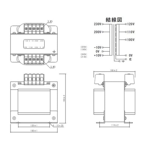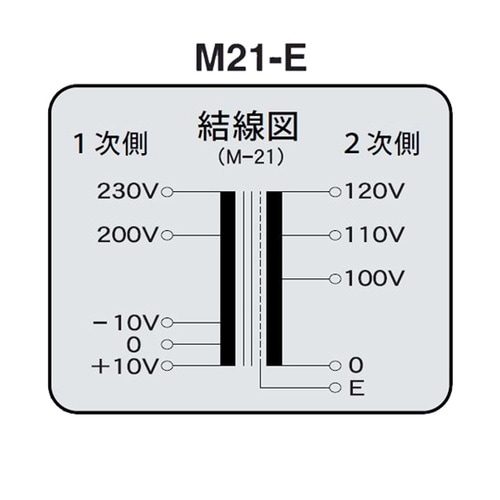 M21−E 200V系通電表示と、入力側に±10V(±20V)端子を設けることにより、1台のトランスで6種類の入力電圧に対応。単相 複巻マルチタップ静電シールド接地端子Mシリーズ画像です。 |