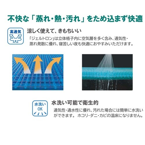 コンパクトで持ち運びしやすいサイズのジェルトロンピローです。厚さ4.5cmのジェルを使用し、小さいながらもクッション性があり圧力吸収に優れています。 |