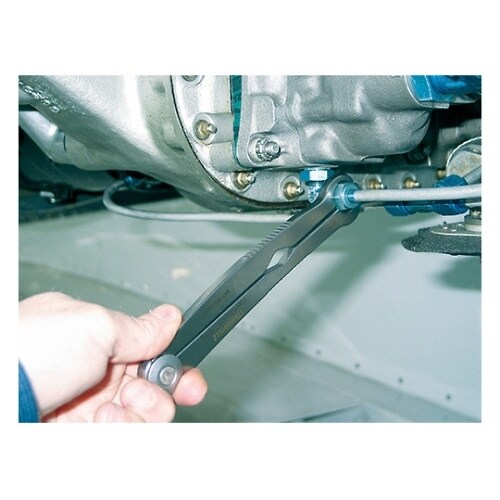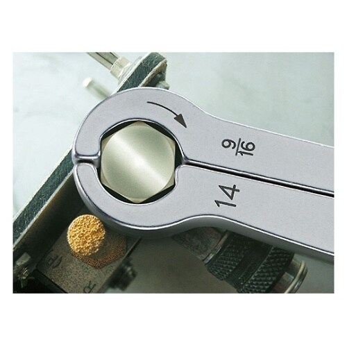 パイプフランジのユニオンナットにも最適なステンレス製レンチ。スパナのようにサイドから簡単にボルトやナットにアクセスできる。つかみ面は面接触なので、角の丸くなったボルト・ナットにも使用可能。 |